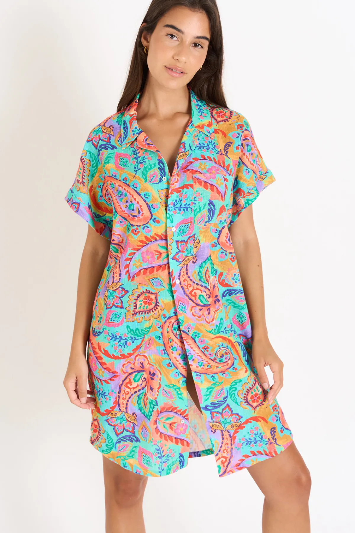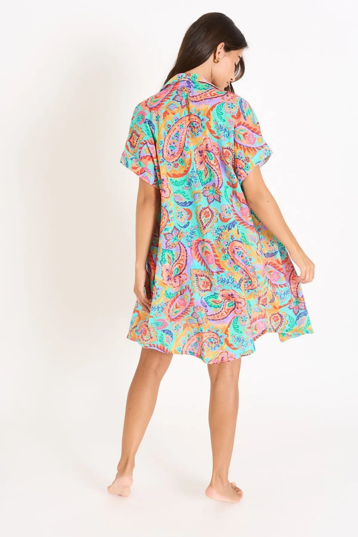 | Détails | • Robe chemise • Imprimé cachemire • Manches courtes • 100% coton |