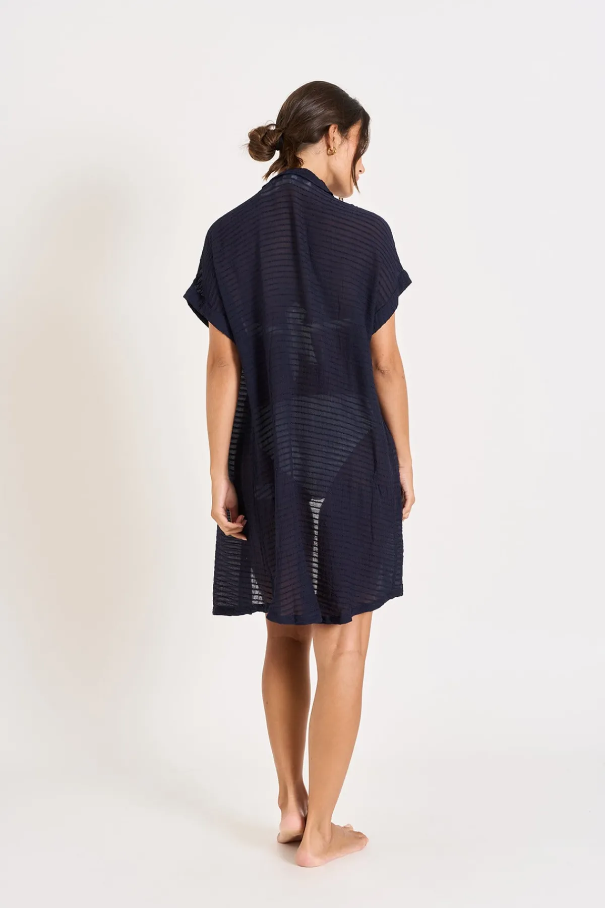 | Détails | · Chemise de plage · Manche courtes · Matière semi transparente · Boutons |