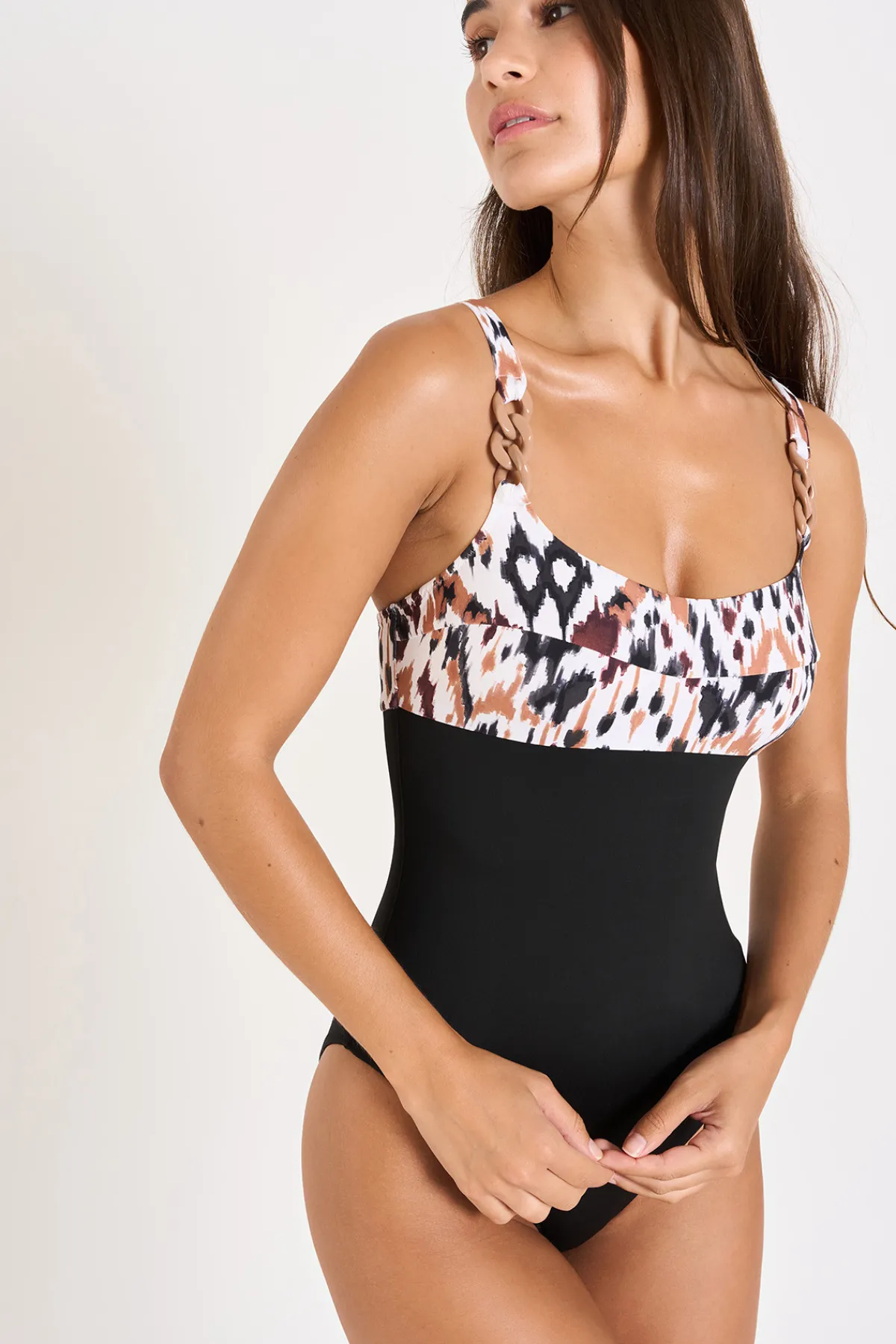 | Description | Maillot de bain 1 pièce ESCONA BANGKA. Ce maillot de bain 1 pièce est la pièce tendance cette saison : détails chainettes couleur taupe et tissu bicolor. Tous les maillots de bain sont livrés avec une jolie pochette étanche Livia Monte-Carlo. |