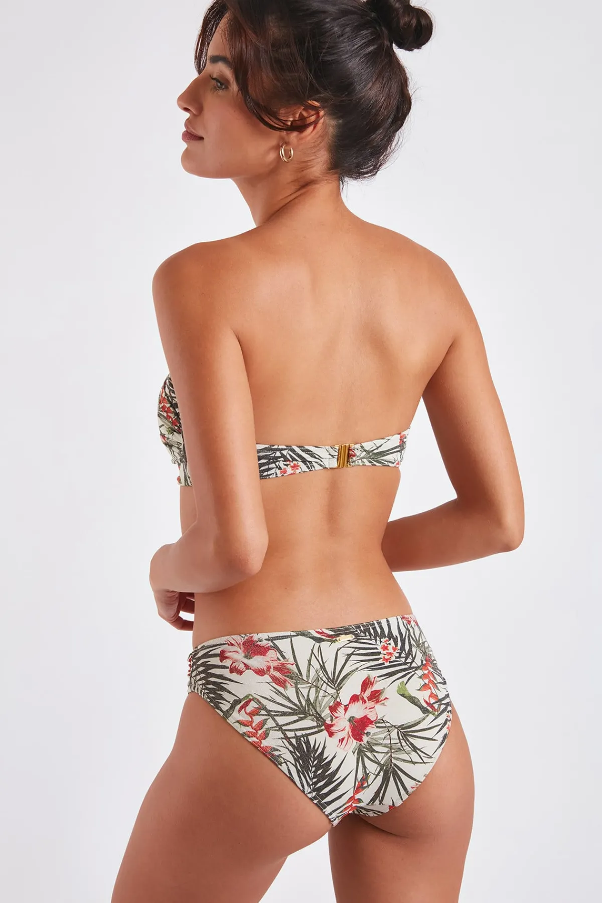 | Détails | • Haut de maillot de bain 2 pièces • Coloris écru imprimé floral • Effet irisé • Coques • Bonnet C • Bretelles amovibles • Attache dos par clip |