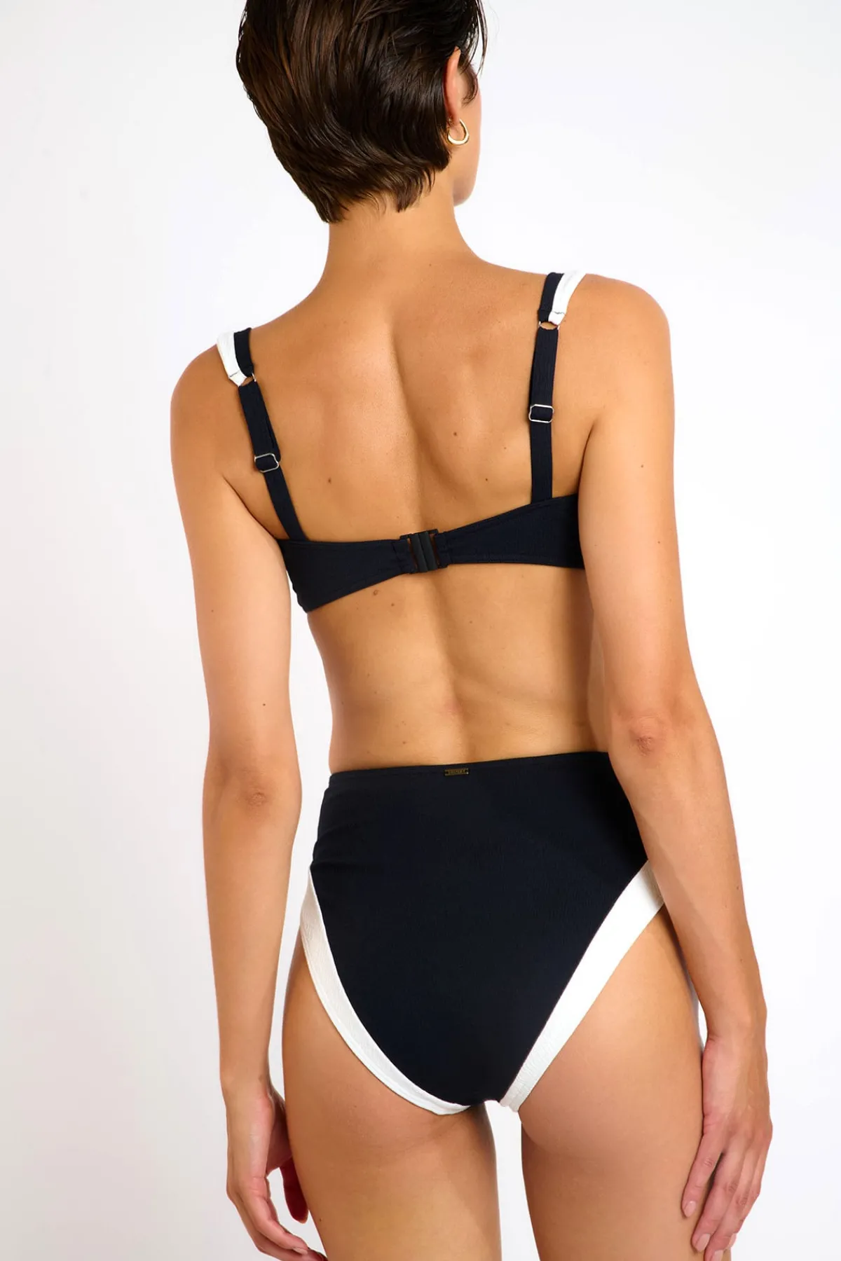 | Détails | Coques amovibles pour un galbe naturel Bijou central décoratif Bretelles réglables Fermeture au dos Tissu texturé Un maillot écoresponsable conçu à partir de 92 % de polyamide recyclé