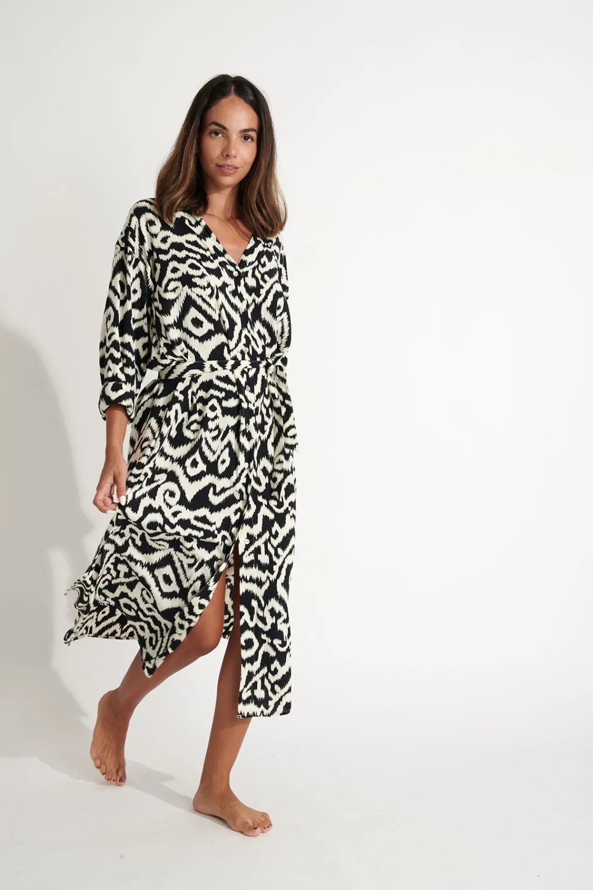 | Détails | • Robe longue • Se resserre à la taille • Motifs |