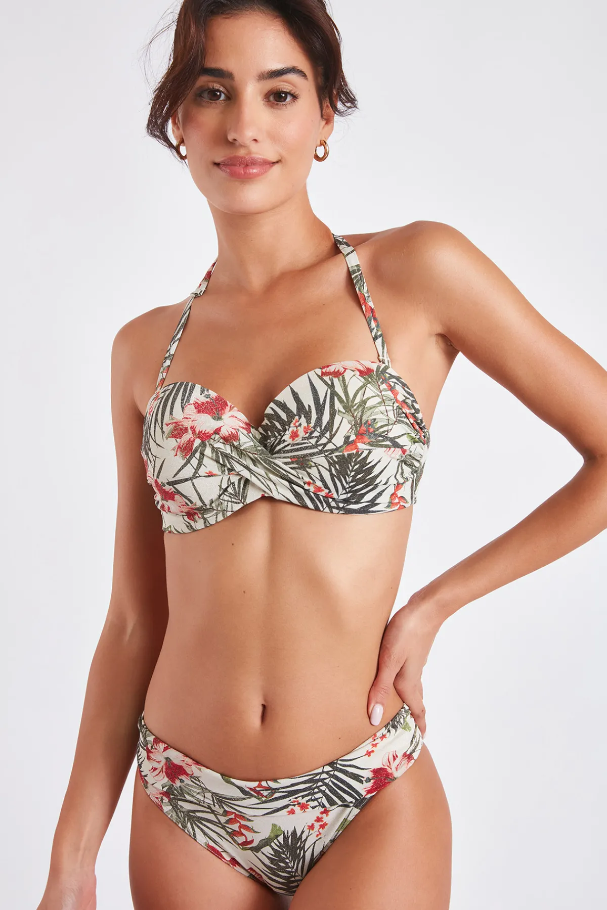 | Détails | • Haut de maillot de bain 2 pièces • Coloris écru imprimé floral • Effet irisé • Coques • Bonnet C • Bretelles amovibles • Attache dos par clip |