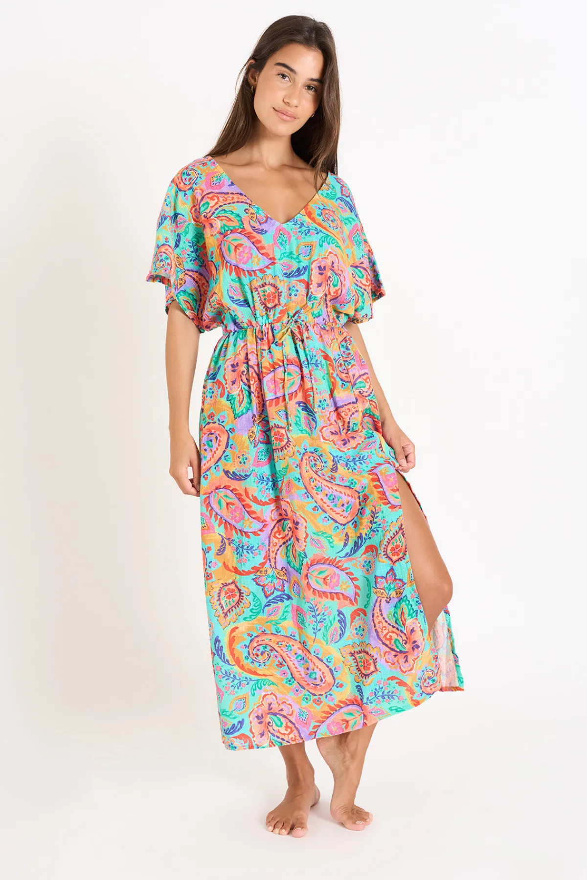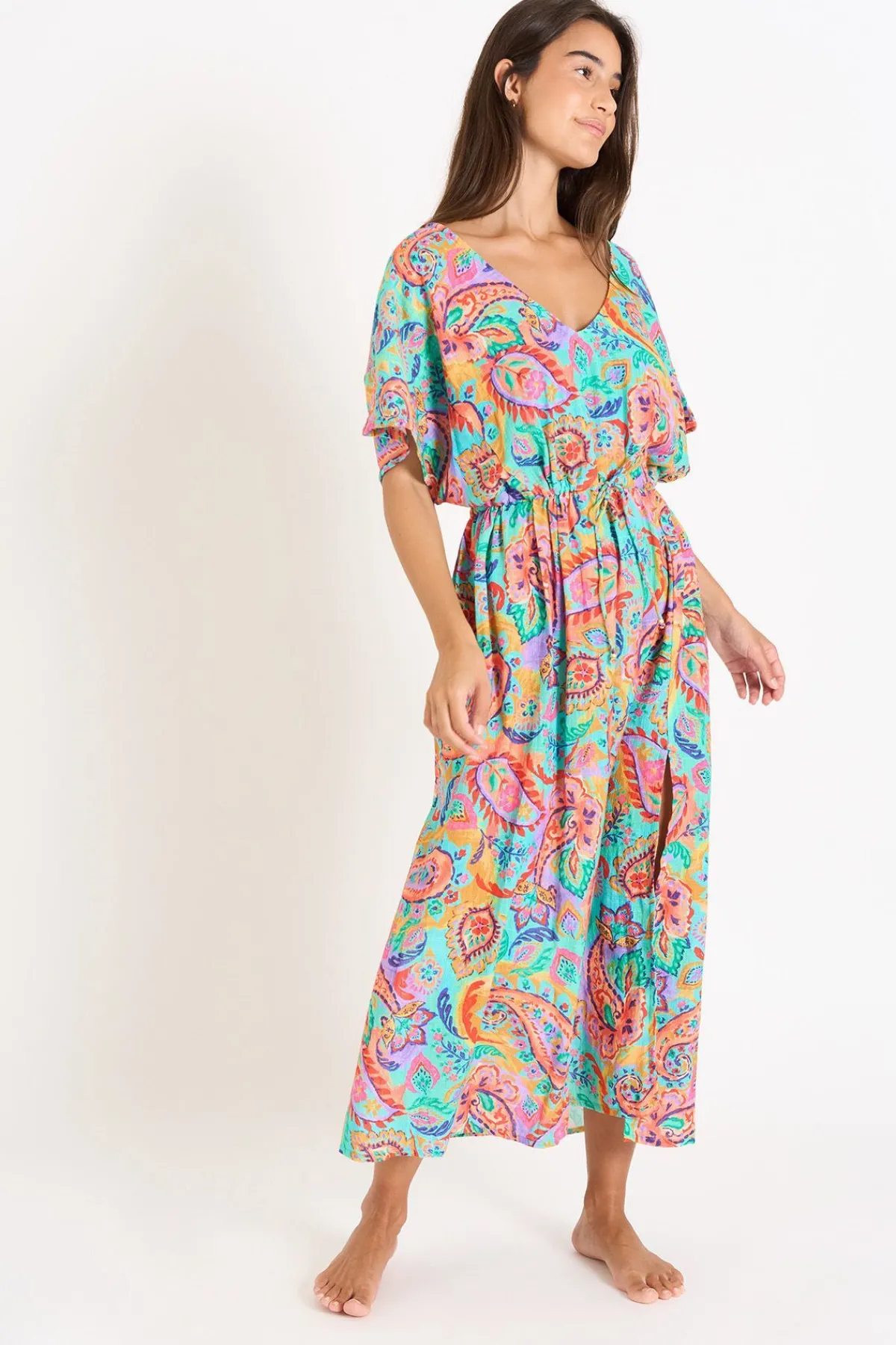 | Détails | • Robe fluide • Imprimé cachemire • Manches courtes • Se resserre au niveau de la taille |