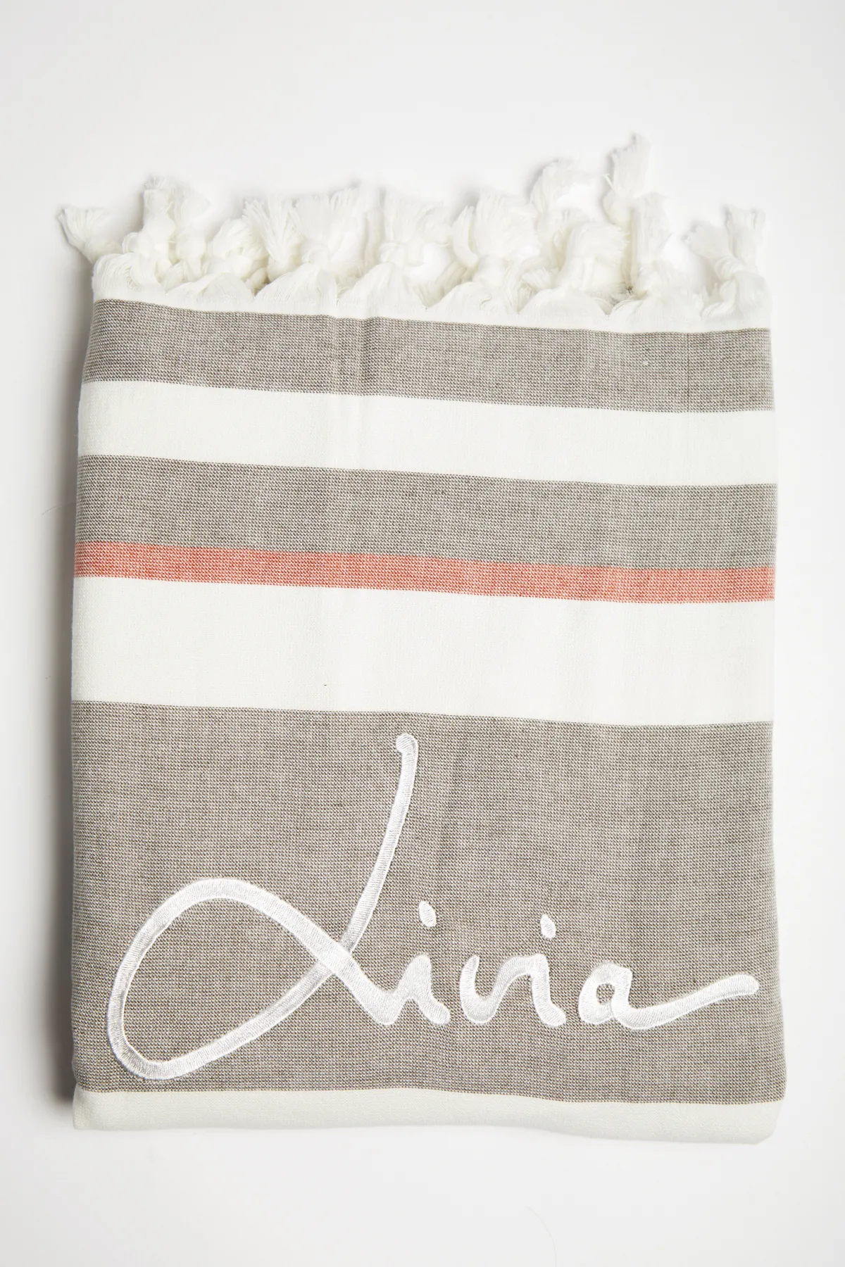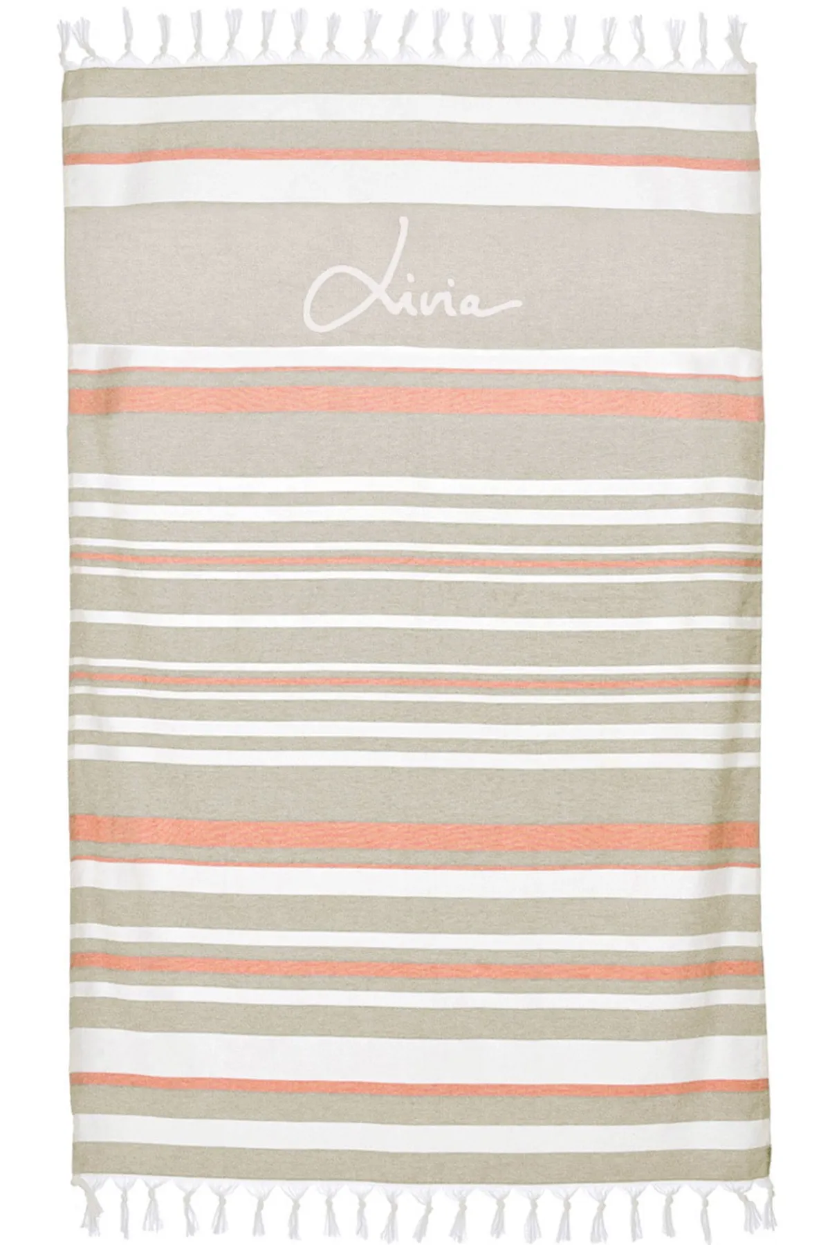 | Description | Fouta à rayures GIORGOS FOUTAS. Cette fouta de plage est l’accessoire tendance de cet été. Fabriquée en coton tissé, elle est douce, absorbante et sèche rapidement. Elle est agrémentée de franges nouées et d’une belle broderie « Livia ». Deux côtés : un côté bouclette pour sécher rapidement après vos baignades et un côté fouta pour se prélasser au soleil. |